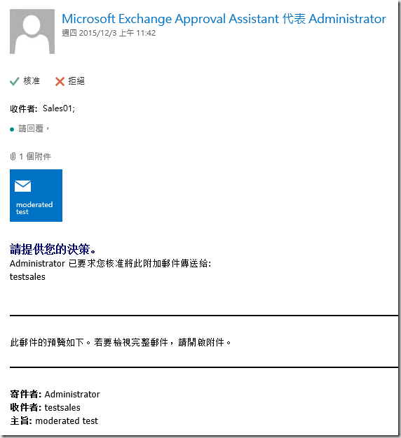 2.設定條件和符合條件後的動作,除了核准郵件外,也有其他的動作可以依需求選擇。