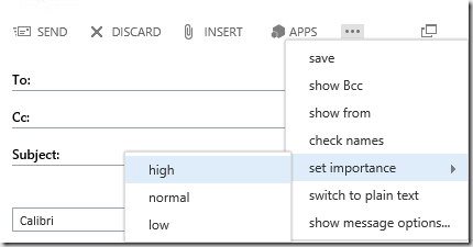 4.使用者可以用Outlook或OWA設定郵件的重要程度。