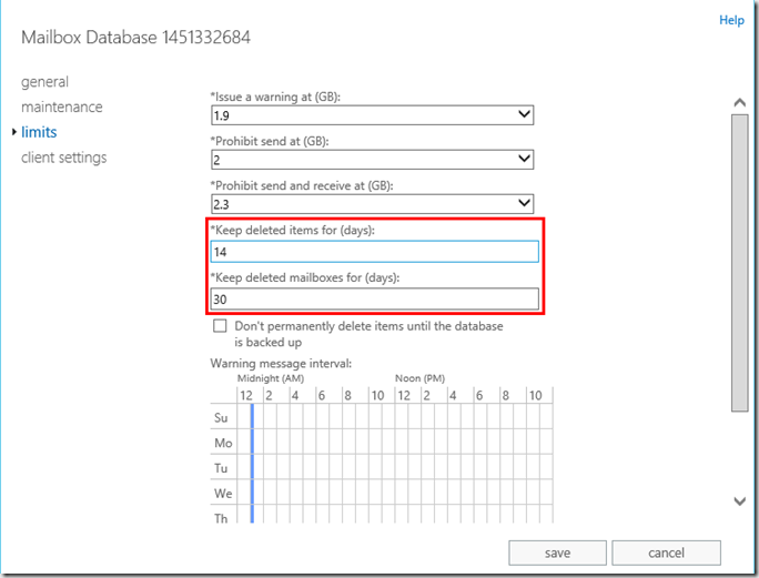 2.在限制中可以設定保留已刪除郵件和信箱的天數。