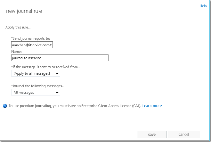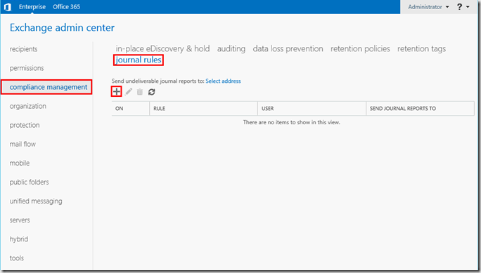 1.進入Exchange系統管理中心>相符性管理>日誌規則>+(新增)。