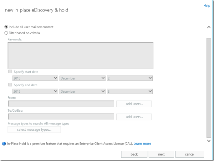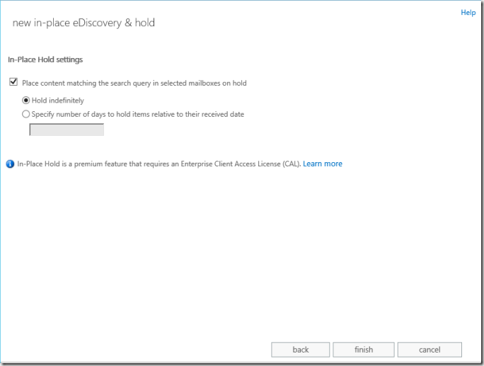 6.選擇是否要就地保留。(當搜尋範圍為所有信箱時,無法啟用就地保留)