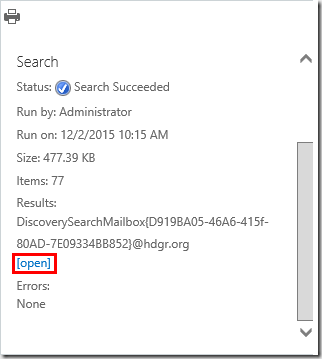 8.當有搜尋結果放在探索信箱後,在右方窗格中點選開啟,便能開啟探索信箱。