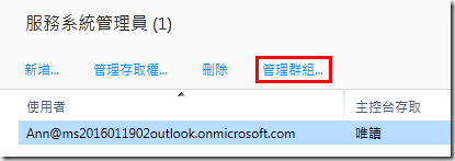 3.新增完畢後回到服務系統管理員的頁面,點選管理群組。