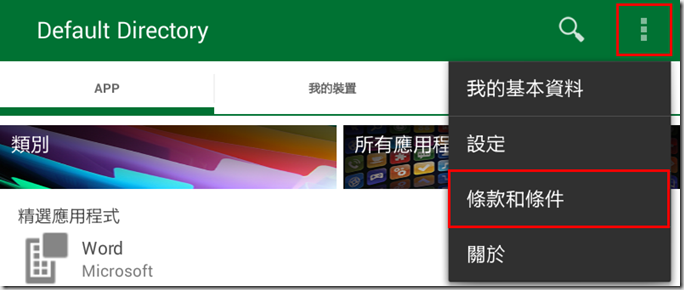 5.在註冊後也可從右上角的下拉式選單中,點選條款和條件檢視。