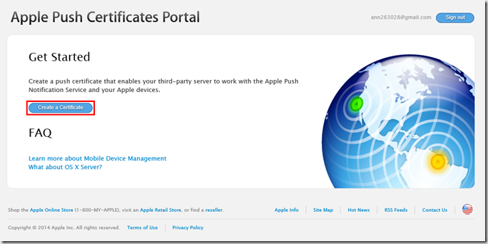 1.點選下載APNs憑證要求,下載完畢後點選Apple Push Certificates 入口網站。