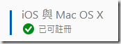 6.完成後,iOS與Mac OS X會顯示已可註冊。