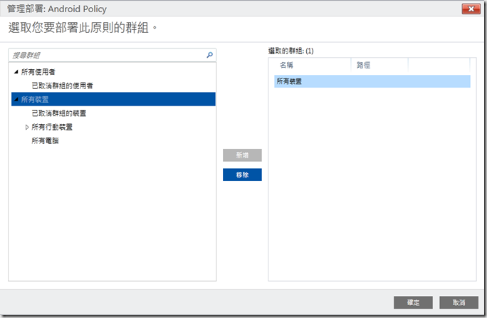 5.如點選是,就可以選擇部署至使用者或裝置。本例選擇部署之所有裝置。