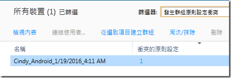 5.在原則的概觀中原則狀態顯示有一個具有設定衝突的裝置。
