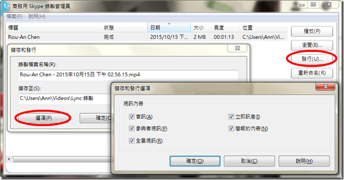 3.停止錄製後,可以到管理錄製中開啟錄製管理員,在發行的選項中選擇想要保存的內容。