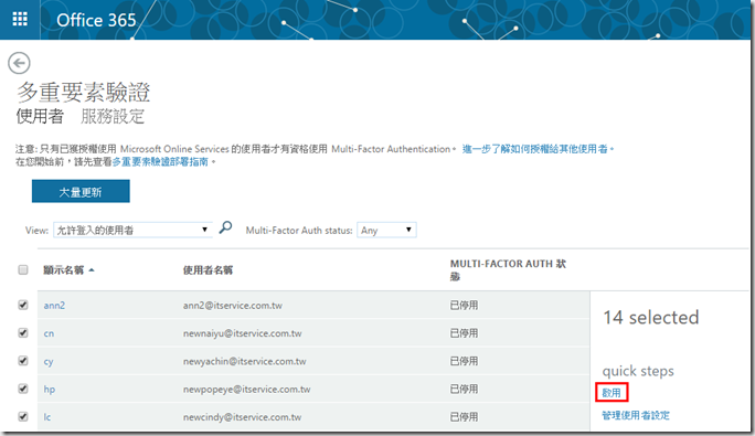Office 365 管理者日誌 (6) 提升Office365安全性 設定多重要素驗證