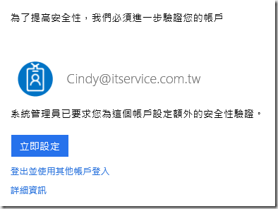 1.透過瀏覽器登入Office365時,會出現立即設定的選項。