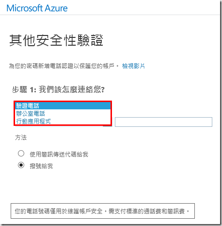 2.可選擇電話、辦公室電話、行動應用程式來進行驗證。