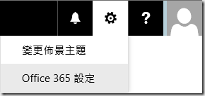 7.假如需要新的應用程式密碼,請登入Office365後,點選右上角齒輪>Office365設定。