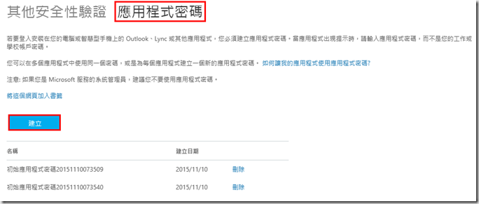 10.點選上方的應用程式密碼,點選建立。