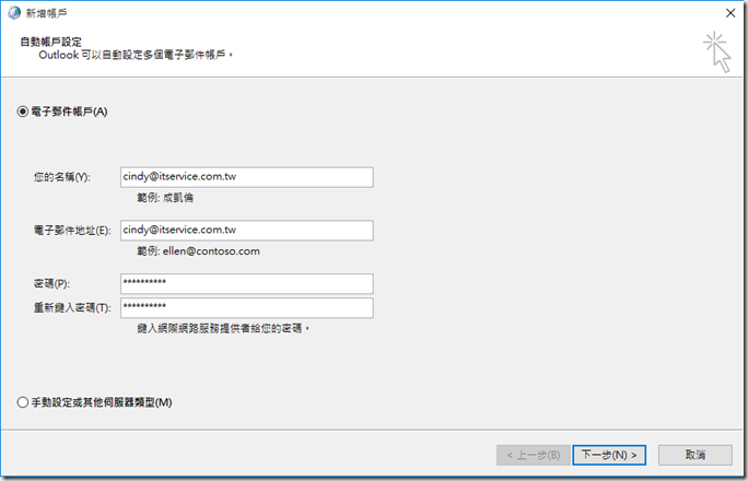 5.以設定Outlook為例。