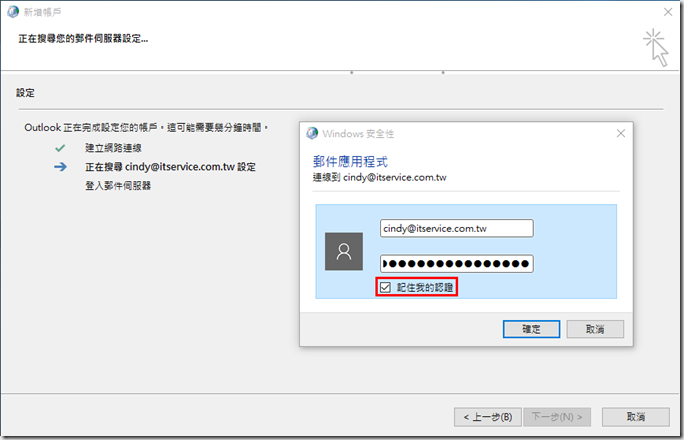6.跳出驗證後,請貼上剛才複製的應用程式密碼,並勾選記住我的認證,不然之後又跳出驗證時,卻已經忘記應用程式密碼的話,就必須要再建立新的驗證密碼。