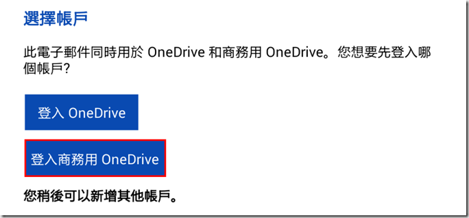 1.一開始登入時請選擇商務用OneDrive。