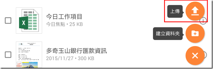 4.點選下方的+號,會跳出上傳or建立資料夾。