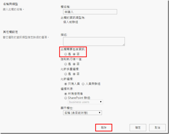 可能有些人會覺得奇怪,為什麼是修改者不是建立者?為什麼是顯示名稱不是使用者識別號碼?因為我測試的結果就是新增表單後,建立者的欄位是空的,修改者欄位才有資料。使用者識別號碼不成功,顯示名稱才成功啊~所以我也不知道為什麼,這方面還要再繼續研究!