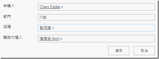 在Office 365 管理者日誌 (27) 使用SharePoint Designer自訂工作流程中,只介紹了基本編輯工作流程的方法,這篇文章要開始挑戰稍難一點的部分了。假定的請假流程如下,每位員工在請假時需要有職務代理人,請假時要先經過職務代理人同意,然後由自己部門的經理同意,最後由老闆同意。但是每位員工的職務代理人和經理都不相同,這時要怎麼做呢?以下就要教各位動態指派核准者的方法。