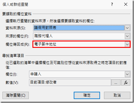 但是在選擇欄位回傳的格式時,要選擇電子郵件地址。