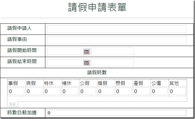 下圖是我設計的請假表單提供大家參考。