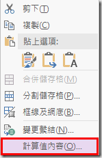 2.點選該控制項右鍵>計算值內容。