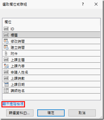 為了要顯示老師的姓名,要用進階的設定方式,如果沒有進行過上面第二項的設定,是抓取不到資料的喔~