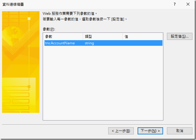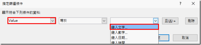 7.左方選擇Value,右方選擇鍵入文字後,輸入PreferredName。
