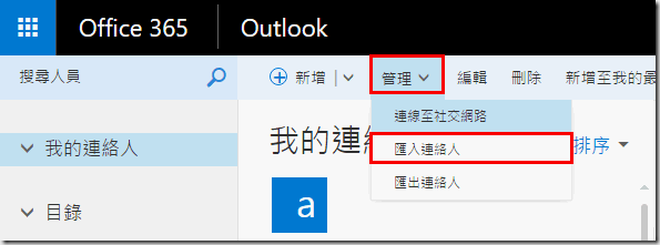 Office 365 管理者日誌 (75) Office365 使用OWA匯入連絡人
