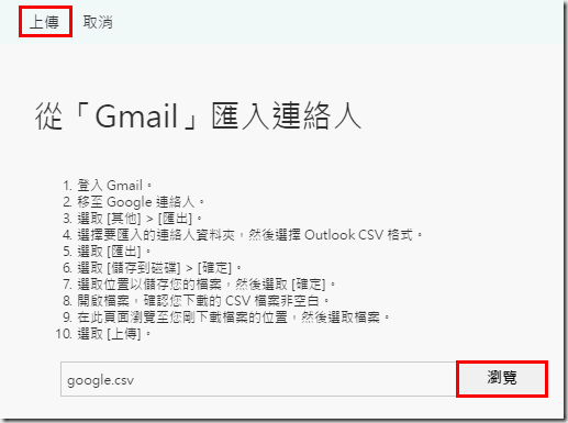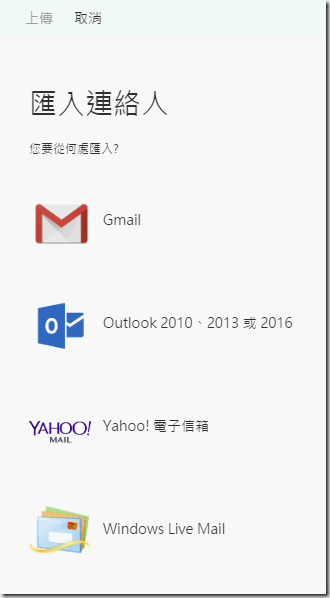 3.這裡要選擇Gmail還是Outlook,是根據"從舊有系統匯出聯絡人"的第5步,是選擇Google還是Outlook而決定的,如果是Google那就是選Gmail,如果是Outlook當然就是選Outlook囉~