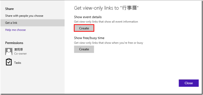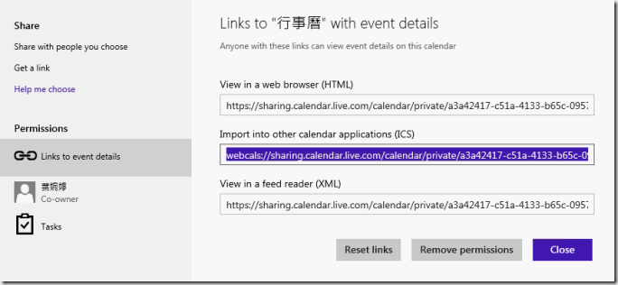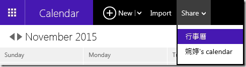 2. 連入http://calendar.live.com/,選擇Share行事曆。