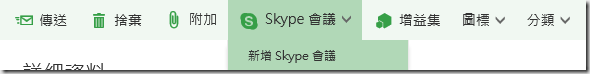 6.如要安排線上會議,請點選畫面上方的Skype會議>新增Skype會議,會議內容中,會自動加上線上會議的連結。