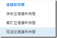 2.例如不能配合會議時間,可選擇建議新時間>拒絕並建議新時間,之後會進入排程助理員查看行事曆與選擇新時間。