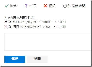 1.如果可以參加會議,可選擇接受>立即傳送回應。