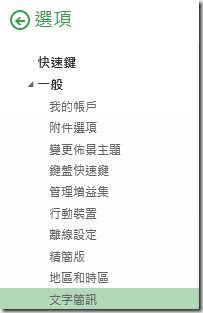 將行事曆的關通知已簡訊方式傳送到手機,要開啟此功能,必須先設定選項>一般>文字簡訊,但目前OWA在台灣還未有支援的電信業者。