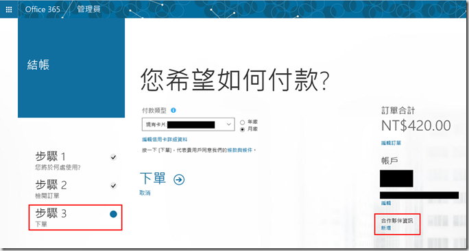 或是在結帳的步驟3中,也可以為這次的訂閱新增合作夥伴。