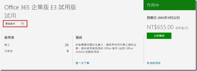 == 要試用 Office 365 的朋友,請點 Office 365 Enterprise E3 試用版 – 30 天期 進行試用申請。 ==