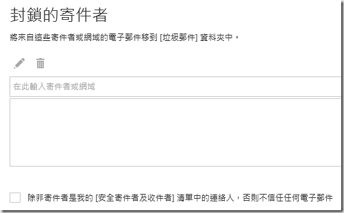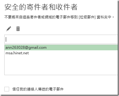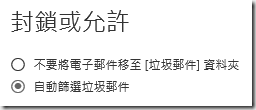 1.在封鎖和允許中,能選擇不將任何電子郵件當作垃圾郵件。