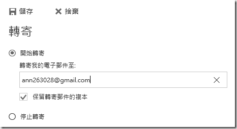輸入電子郵件就能將收到的信件都轉寄給指定的email。