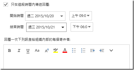 4.可以指定某段時間內才傳送回覆,如果不勾選的話就是永遠都會傳送回覆。