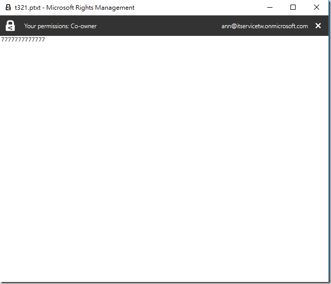 8.因此我只好用擁有者的權限開給大家看,在上方會顯示使用者對於此檔案的權限以及目前使用的帳號。另外檔名因為被加密了,也從txt變為ptxt。